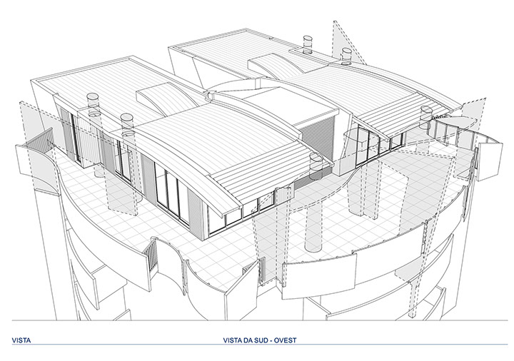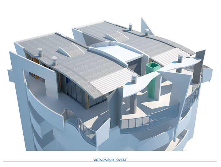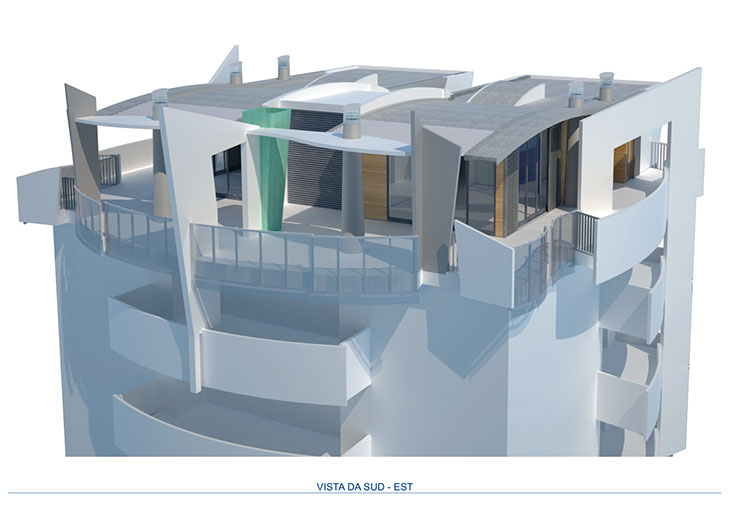 Sopraelevazione di un edificio denominato torre di Nòe per la realizzazione di servizi alle residenze.